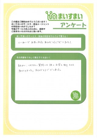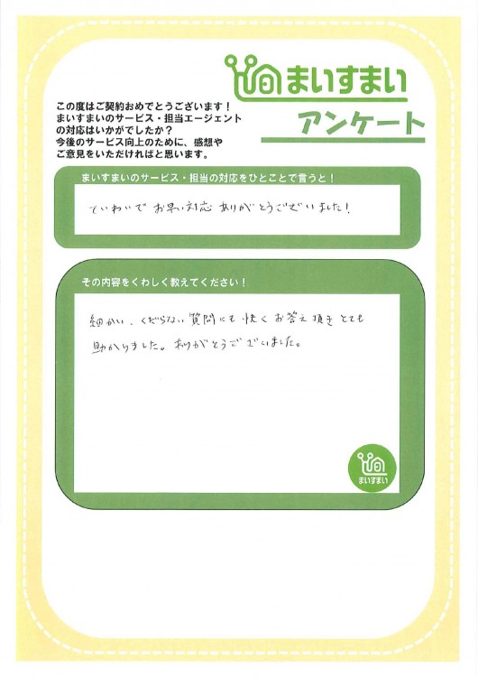 細かい、くだらない質問にも快くお答え頂きとても助かりました。