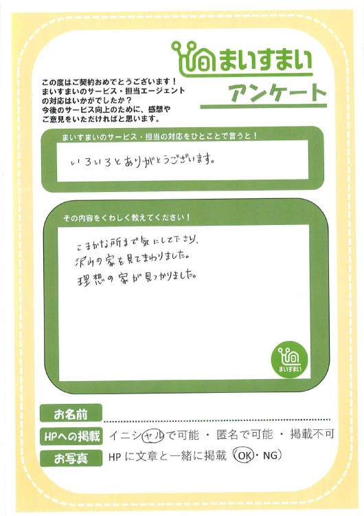 こまかな所まで気にして下さり、沢山の家を見てまわりました。